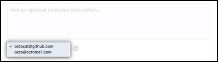 Passo 4 . É fácil verificar o endereço de e-mail vinculado à conta GitHub. Os endereços de e-mail verificados aparecem no menu suspenso.
