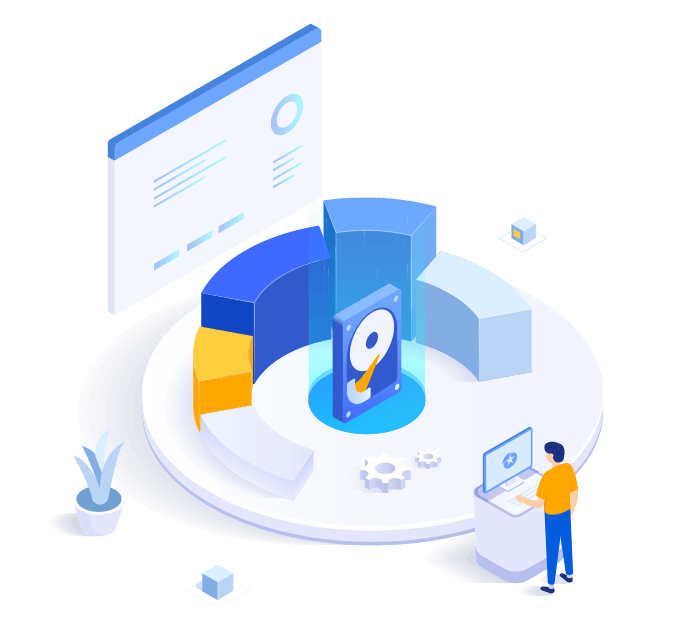 Pode ajustar de forma flexível o tamanho da partição deslizando a partição para a esquerda e para a direita ou insira o tamanho exato da partição. Sem risco de perda de dados.